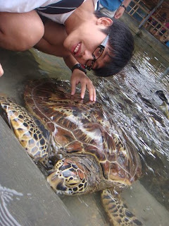 既然是turtle farm,当然养殖为主的就是近将绝种的海龟。我手上拿着的这一只海龟重达将近20公斤,赶快拍了照便交回给工作人员(没那么大的力气一直拿着),不然海龟就跌下地上受伤。